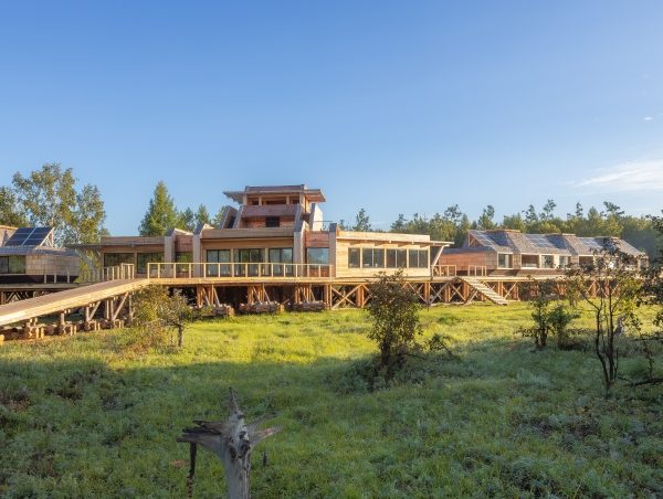 Отель «Аврора», открывшийся в Мильковском районе Камчатского края на берегу реки Камчатки в 380 км от Петропавловска-Камчатского, соединяет в себе преимущества современной гостиницы и традиций отдыха на природе. Гостевые дома и ресторан отеля расположены на большой, нависающей над землей платформе из лиственницы высотой 3 м и площадью 2500 кв. м. Благодаря этому перед гостями открывается эффектный панорамный вид на тайгу.