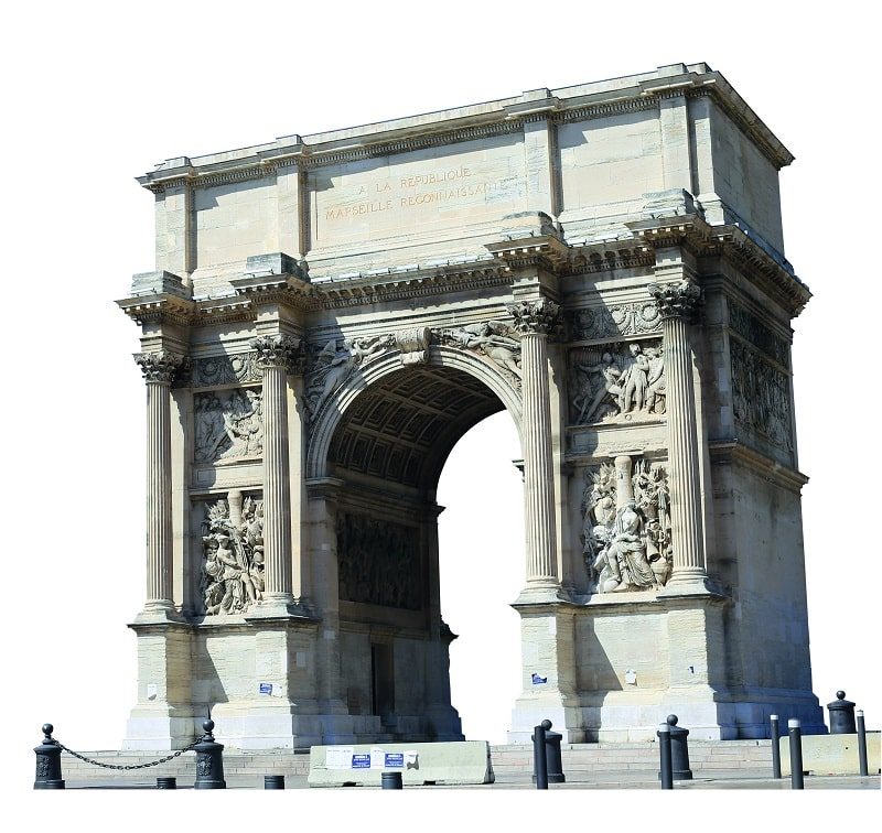 Триумфальная арка Марселя, посвященная победам французского оружия, возведена на месте античных ворот, от которых шла дорога на Экс