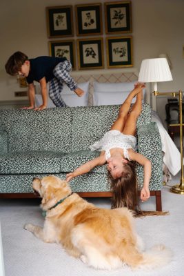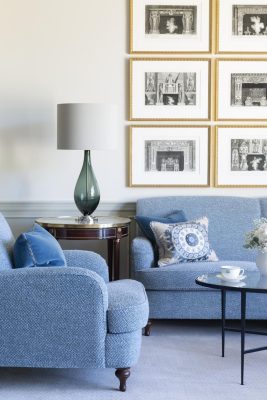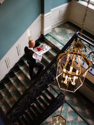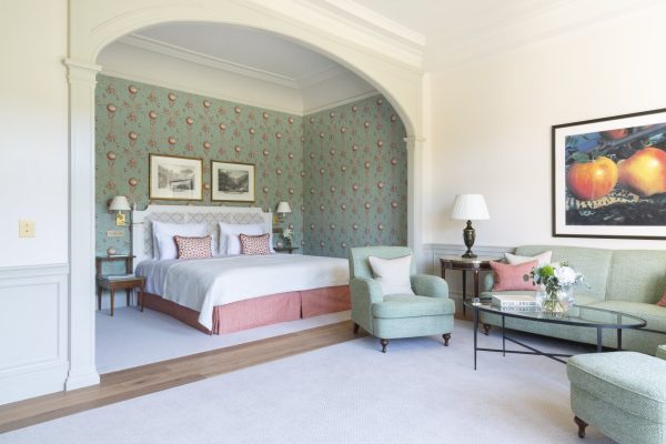 Эстетика уникальных дизайн-концепций для номеров отеля навеяна стилем Beaux-Arts XIX века и английскими интерьерами: богато украшенный текстиль, антикварные письменные столы, изготовленные на заказ комоды от местных мастеров. Цветовая палитра включает мягкие коралловые, зеленые, пудрово-голубые и кремовые оттенки. Ткани и обои от таких знаковых домов, как Colefax and Fowler, Pierre Frey и De Gournay, придают интерьерам теплоту и фактуру. Особенное внимание уделено историческим деталям: бережно сохраненные деревянные балки XIX века впервые предстали перед публикой.