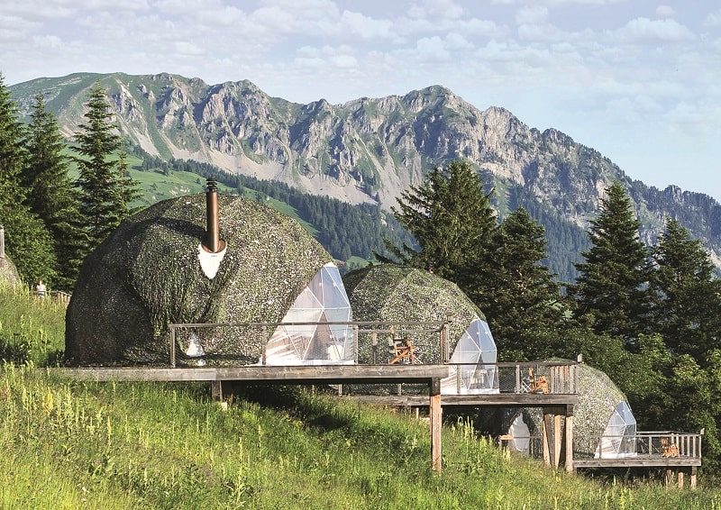 Глэмпинг на обветренных склонах Швейцарских Альп? Именно так! 16 лет назад София де Мэйер, хотельер-предприниматель с огромным опытом, одержимая (в хорошем смысле этого слова) идеей экологической роскоши, построила этот самобытный кемп на высоте 1400 м над уровнем моря. Использование воды и энергии строго регулируется, отходы утилизируются, продукты для кухни закупаются у местных фермеров, а обслуживающий персонал добирается до работы исключительно пешком. Whitepod состоит из десяти полусфер, напоминающих инопланетные модули и обогреваемых индивидуальными дровяными печами, и представляет собой настоящий всесезонный горный курорт. Зимой здесь можно кататься на горных лыжах и сноубордах на принадлежащем кемпу склоне, днем и ночью открытом исключительно для его гостей, летом – гонять на электробайке и проходить квесты в лесу, и круглый год – нежиться в спа и практиковаться в йоге.