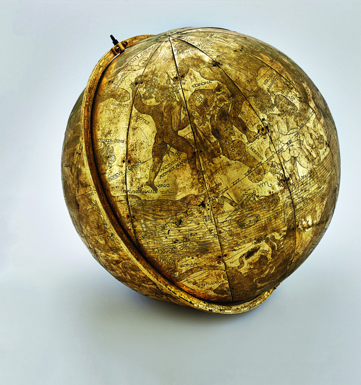 В числе знаковых предметов, представленных на выставке в Кремле, – позолоченный медный глобус с изображением небесной сферы, изготовленный немецким мастером XVI века Кристофером Шисслером. Сам прибор, снабженный еще и часовым кругом, украшен едва различимыми фигурами зверей и людей. Это изображения зодиакальных созвездий, выполненные по рисункам Альбрехта Дюрера. Глобус был частью королевской коллекции – вероятно, один из португальских монархов заказал его в Германии либо же получил в качестве подарка. Между прочим, владение подобными небесными сферами в Португалии было большой привилегией – король Мануэль I в 1504 году специально запретил создание «карт мореплавания» и глобусов, как земных, так и небесных, чтобы лучше сохранять тайные знания о далеких землях.