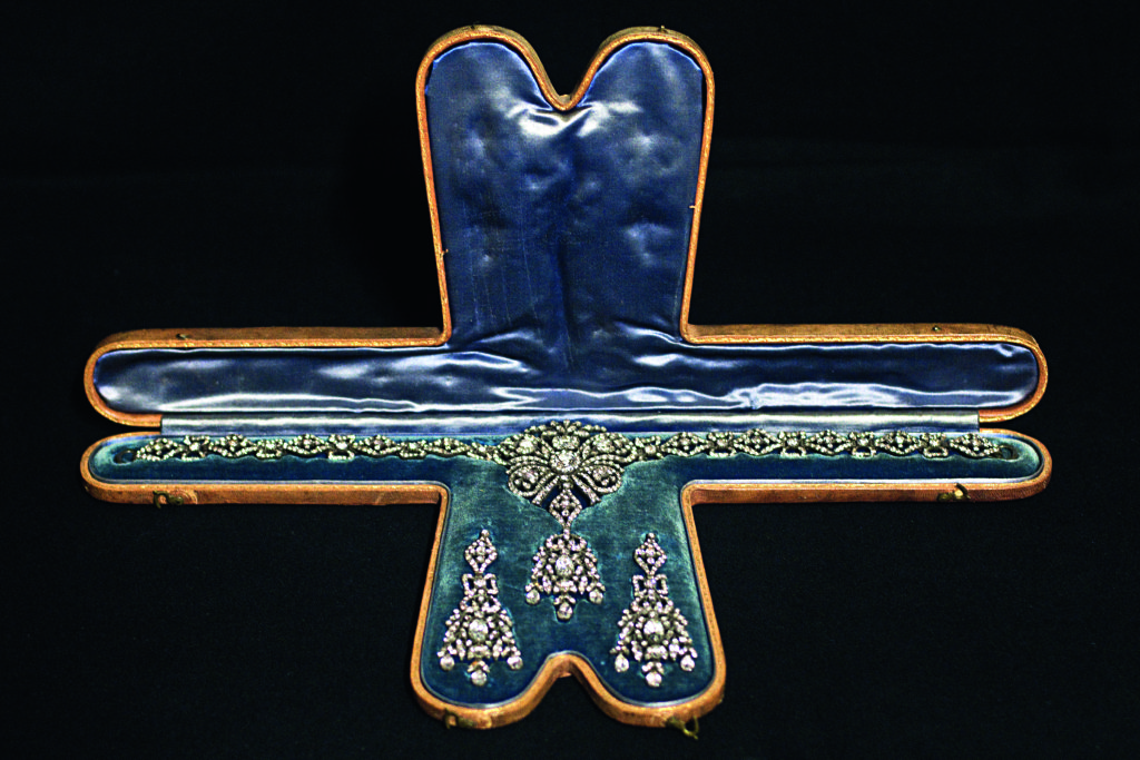 Среди украшений, представленных на выставке, достаточное число предметов, созданных в XVIII веке. Португалия тогда уже не играла важной роли в торговле с Востоком, однако сохраняла контроль над Бразилией, императором которой считался ее король. Кстати, во время наполеоновского нашествия тогдашний монарх Португалии сбежал в Латинскую Америку, а европейскую корону отдал сыну. В 1730-х годах в Бразилии были открыты обширные месторождения топазов и других полудрагоценных камней. Самоцветы хлынули на европейский рынок. Если раньше основное внимание ювелиры уделяли массивной оправе, то теперь, имея под рукой массу недорогих, но красивых камней, они начали создавать воздушные, будто кружевные гарнитуры – что вполне соответствовало эпохе наступающего стиля рококо.