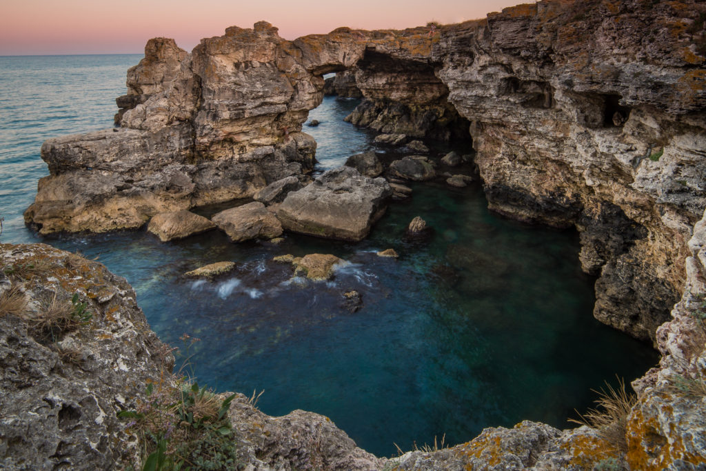 Недалеко от пляжа Болата находится Тюленово, известное пещерами и фермой мидий