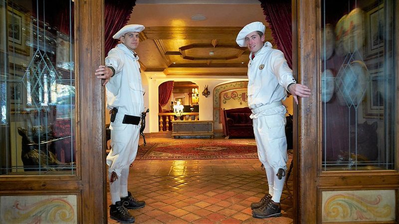 Обмундирование Альпийских стрелков, элитных французских горнострелковых войск, основанных в 1888 году, вдохновило команду Airelles Courchevel, Les Airelles на создание реплики костюма для парковщиков – сотрудников, которые самыми первыми встречают гостей курорта. Этот традиционный мужской наряд под названием «Сальферино» состоял из темно-синих трикотажных панталон, рубашки, гольф и объемного берета, который был официально принят в качестве головного убора для стрелков в 1891 году по указу министра обороны. Цветовое решение униформы для сотрудников этого горнолыжного курорта Куршевеля поменяли. Сегодня гости отеля находятся в окружении «снежных стражей», облаченных в элегантные белоснежные костюмы с объемными беретами – «плюшками».