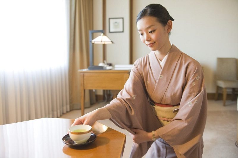 Кимоно – один из загадочных костюмов. Его, например, носят сотрудники службы по работе с гостями токийского отеля Imperial Hotel, Tokyo. С момента своего открытия в 1890 году этот первый «западный» отель страны старался во всем следовать европейскому стилю. Однако, было решено сохранить традиции и сделать кимоно частью униформы, чтобы позволить гостям почувствовать себя в Японии. Несмотря на то, что для местных жителей в этом костюме нет ничего удивительного, в повседневной жизни кимоно никто не носит. Поэтому, и надевать его – это целое искусство. Так, если вас приняли на роль сотрудника службы по работе с гостями, первым делом стоит потренироваться самостоятельно надевать кимоно. У новичков это занимает не меньше часа, а вот опытному сотруднику достаточно всего 20 минут. Несмотря на широкий выбор существующих расцветок и узоров, все кимоно в отеле однотонные. Тем не менее в гардеробной для персонала хранятся кимоно разных цветов и размеров, так что сотрудники могут выбрать вариант, подходящий именно им.