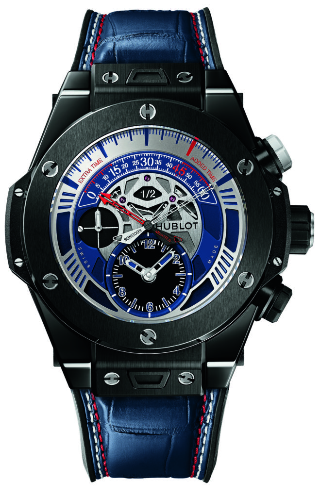 Бренд Hublot давно признался в любви к футболу. В 2008 году марка была выбрана официальным хронометристом европейского чемпионата по футболу, прошедший турнир во Франции стал уже третьим по счету. Новые официальные часы соревнований Big Bang Unico Bi-Retrograde Chronograph UEFA EURO 2016 в черном керамическом корпусе имеют отделку в цветах французского триколора. Они выпущены лимитированной серией в 100 экземпляров.