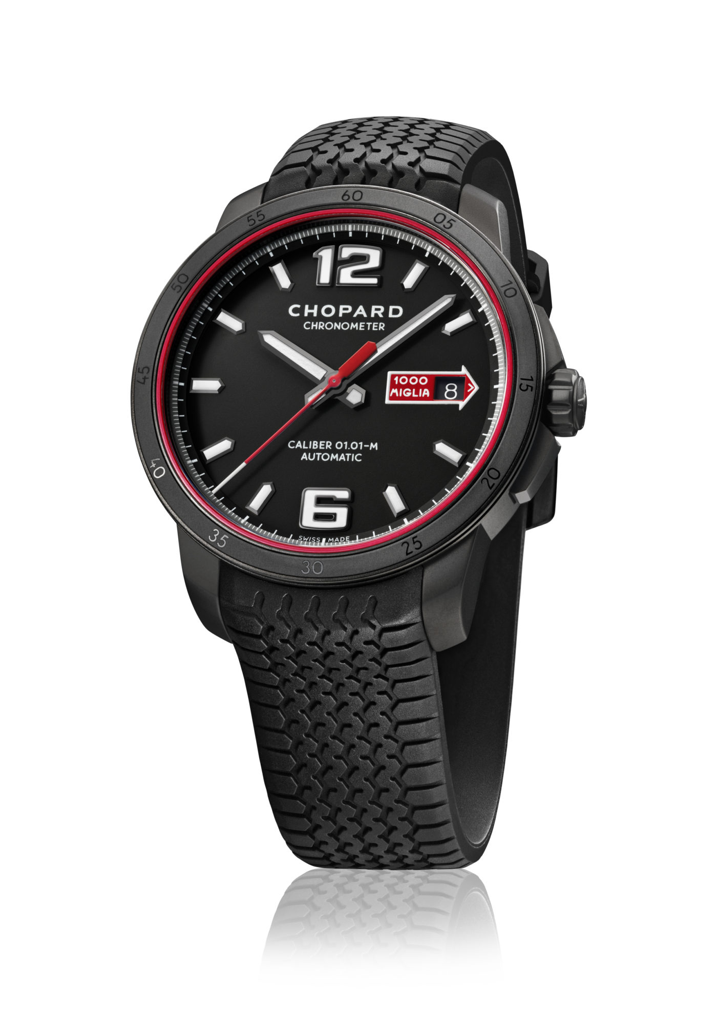 С 1988 года швейцарский часовой дом является официальным хронометристом автогонок Mille Miglia из Брешии в Рим и потому с завидной регулярностью обновляет коллекцию часов с узнаваемой красной стрелкой. Стильный винтажный облик модели Mille Miglia GTS Automatic Speed Black напоминает классический дизайн легендарных гоночных автомобилей – участников ралли. В стальной корпус с черным DLC-покрытием заключен мануфактурный автоматический механизм. На каучуковом ремешке воспроизведен рисунок протектора шин Dunlop середины 1960-х.