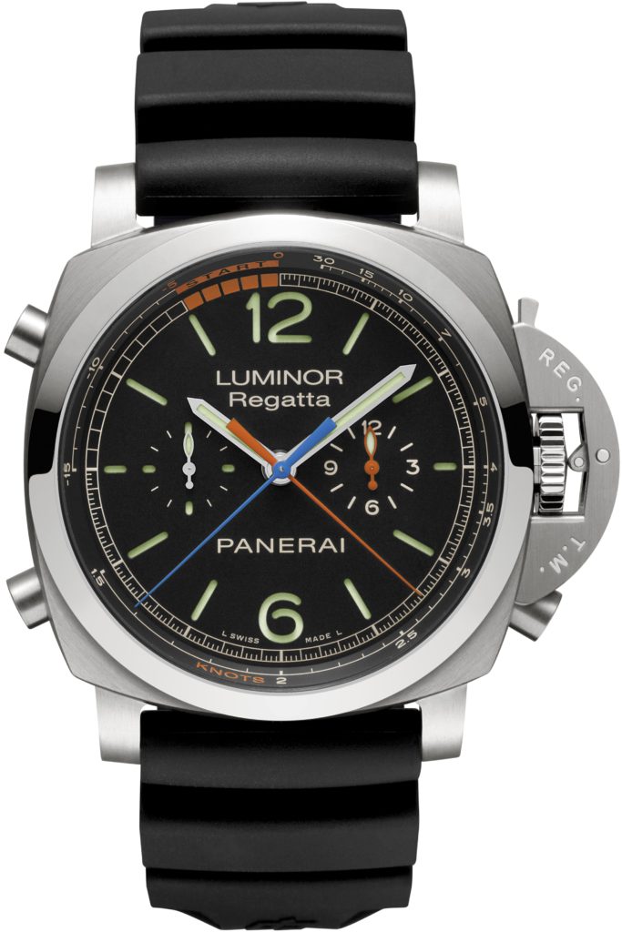 История бренда Officine Panerai неразрывно связана с морем: долгое время бренд создавал часы для итальянских ВМФ. Уже 10 лет марка проводит свою регату Panerai Classic Yachts Challenge, а с 2013 года в ее арсенале есть часы с регатной функцией – титановый хронограф Panerai Luminor 1950 Regatta 3 Days Chrono Flyback Automatic Titanio 47 mm. Тахиметрическая шкала на ободке имеет разметку не в «сухопутных» километрах в час, а в морских узлах.